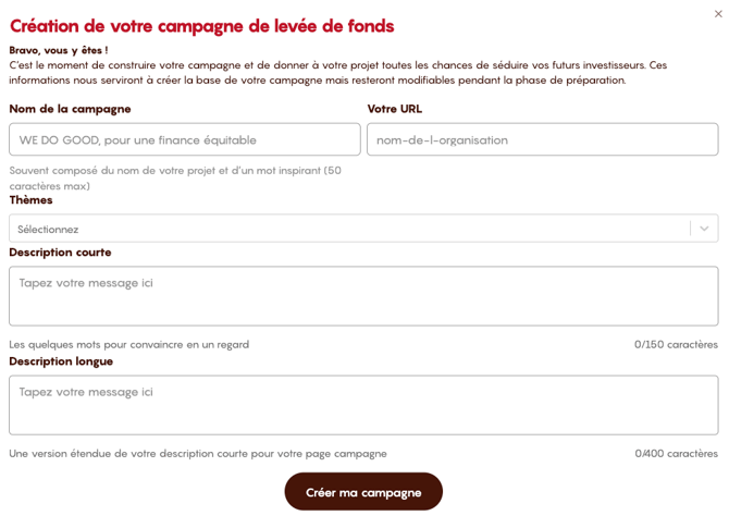 Vous y êtes ! Votre espace de campagne est créé, vous êtes prêts à poursuivre la préparation de votre levée :-)
