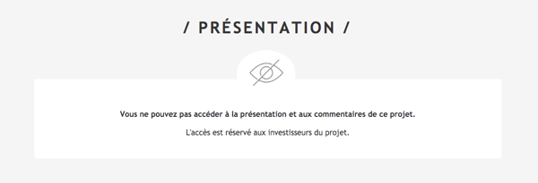 Si cette option est activée, seuls les investisseurs du projet ont accès à la partie présentation de votre page.